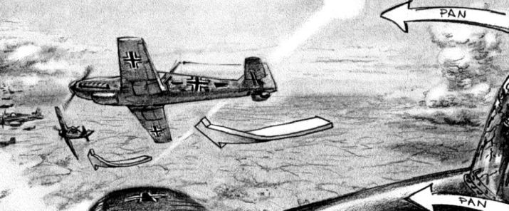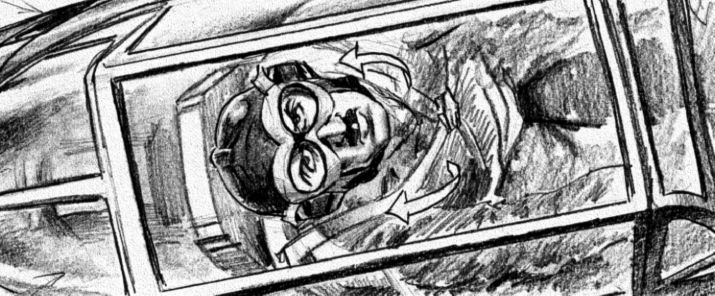 Here are some samples of storyboards in slideshow format. I picked scenes from projects that never saw the light in which I like my artwork. Click on the right arrow to advance. In this format, it is not easy to tell when the camera is moving and when there is a cut.