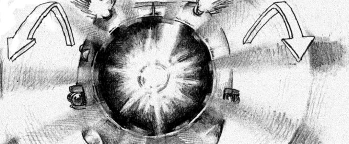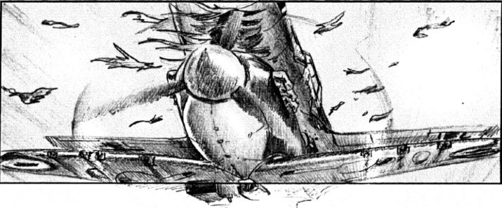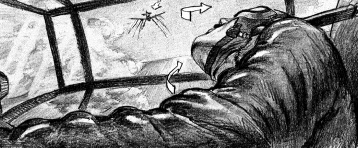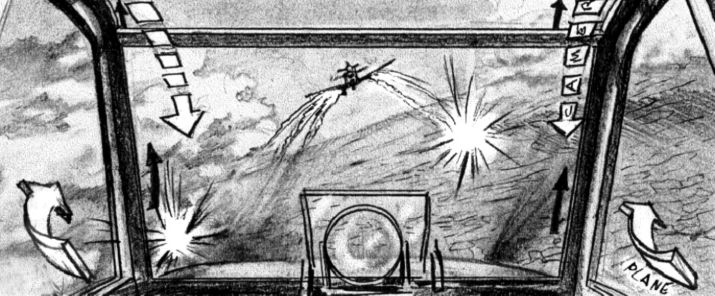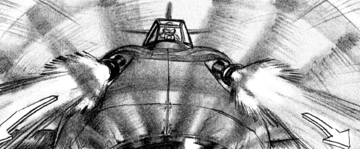 TERMINATOR SALVATION: This sample is only part of a longer shot, on which I take a lot of pride. The art is crude because the shot was meant to be fully pre-vissed. I have chosen to compare my thumbnails to the pre-vis itself (performed by Proof), rather than to the shot as filmed, because I like the staging better.